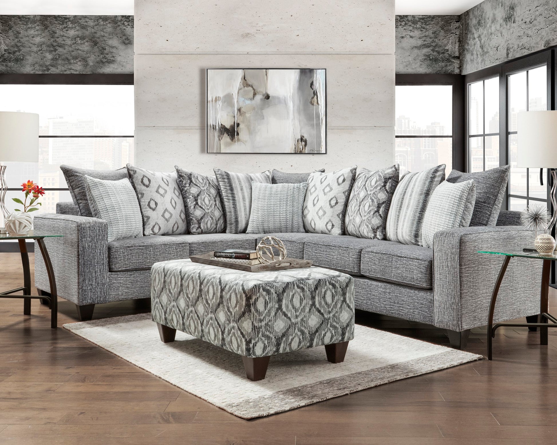 LAF and RAF sectional in a grey "stonewashed" fabric with accent pillows will enhance the decor in any living room.