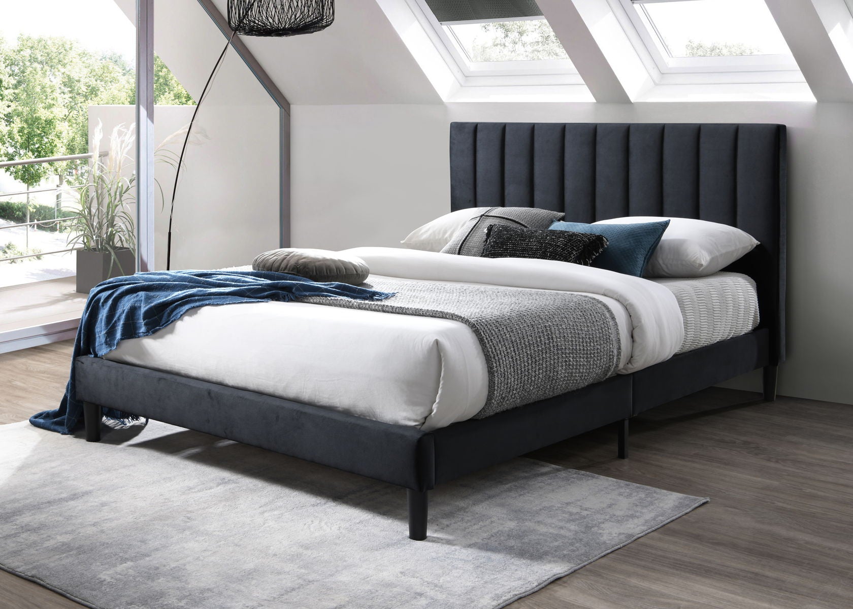 Fabric Tufted Headboard. Platform. Wood Legs.