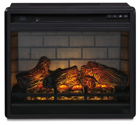 Enjoy the cozy feel of a cracklin’ fireplace without the hassle, maintenance or cleanup. Available as an addition on select TV stands and entertainment centers, this fireplace insert with faux firebrick surround operates with or without infrared heat and includes a multi flame feature, 7-level temperature setting, five brightness levels and an LED glowing embers effect. * Electric fireplace insert provides up to 5,386 BTU/1,500W and warms up to 1,000 square feet (heats larger rooms) * 7-level temperature setting; 5 levels of flame brightness * LED-lit multi flame display operates with or without infrared heat * Realistic-looking log set with dynamic glowing embers * Remote control with LED display * Timer function with programmable ranges from 10 minutes to 9 hours * Overheating control device * Power cord included; UL Listed