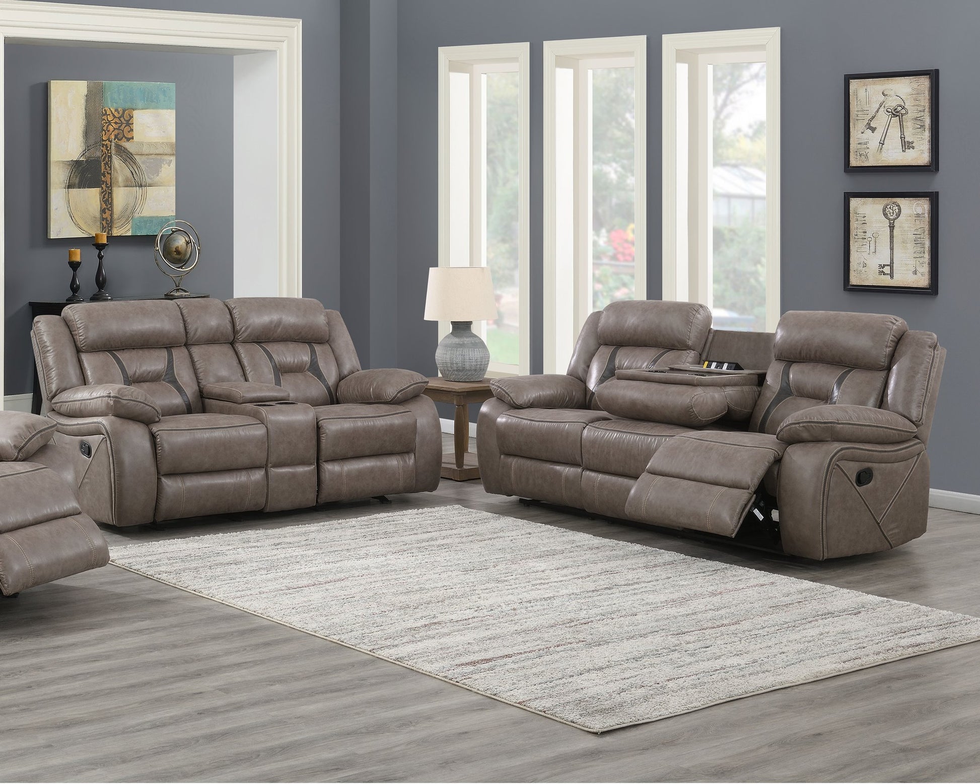 Motion Sofa - Drop Down Console, Power Strip, Cupholders, 2 USB and 2 AC outlets